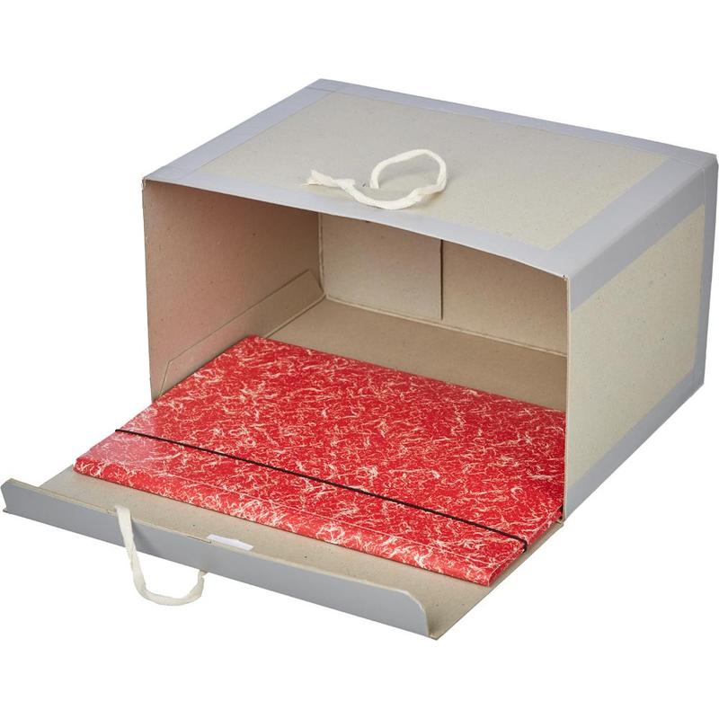 Архивный короб вертикальный Изготовлен из цельного листа переплетного картона серого цвета. Все сгибы проклеены полосами бумвинила. Для долгосрочного хранения переплетнных дел вертикально на архивных полках. Ширина корешка 180 мм. Внешний размер ДхШхВ 240×180×330 мм, внутренний размер ДхШхВ 236×178×328 мм.