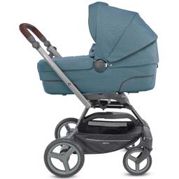 Особенности люльки:Люлька разработана в соответствии со стандартами качества.Наклон спинки регулируется винтом вручную.Для комфорта ребенка в зной, в дне люльки предусмотрены вентиляционные отверстия, которые можно закрыть в холодное время года.Ткань обивки перфорированная, благодаря чему после стирки она быстро сохнет.Стирать можно при 30 градусах.Капюшон с перфорированной вставкой, для вентиляции воздуха в люльке, так же есть съемный козырек с пропиткой UPF50+ которая гарантирует защиту от УФ лучей.Для крепления люльки в машине предусмотрены ремни, которые убираются в кармашки во внутренней обивке люльке.Для переноски снятой с шасси люльки, используется ручка интегрированная в капюшон.Снимается и ставится люлька на шасси с помощью централизованной системы открепления.Плюсом к люльке идет сумка для мелочей и пеленальный матрасик.Люлька так же может использоваться в качестве автолюльки для ребенка от рождения до 10 кг с помощью комплекта Inglesina Kit Autо PRO.Передние колеса поворотные на 180 градусов с ручной фиксацией.Тормоз ножной, расположен по центру оси задних колес.Складывается шасси по принципу зонта, практически одной рукой.Особенности прогулочного блока:Прогулка рассчитана на детей от рождения и до возраста 3-х лет.Блок можно устанавливать как по ходу движения, так и против хода.Для безопасности ребенка предназначены пятиточечные ремни с мягкими накладками.Ремни на спинке фиксируются согласно роста ребенка.Сиденье удобное, с мягкое, достаточно широкое и глубокое, чтоб ребенок в зимнем комбинезоне чувствовал себя свободно.Капюшон большой, опускается низко, за счет вставки на молнии может увеличиваться и опускаться почти до бампера, закрывая ребенка полностью от солнца, ветра или снегопада.Для проветривания коляски в капюшон вшита перфорированная вставка.В холодное время года малыша защитит теплая накидка на ножки, которая поднимается почти до уровня груди малыша.Спинка регулируется в 4-х положениях, максимум опускается до 180 градусов.Бампер выполнен из мягкого моющегося материала, отстегивается с обеих сторон.Подножка из моющегося материала, регулируется по высоте в 2х позициях.Все чехлы съемные, крепятся на кнопки, при необходимости легко снимаются и стираются при 30 градусах.Прогулочный блок снимается и ставится на шасси за боковые ручки и крепиться с помощью механизма Easy Clip.Особенности автокресла Huggy:Сертифицировано согласно европейскому стандарту ECE R 44/04 для группы 0+ (от рождения до достижения ребенком веса в 13 кг).Во избежание боковых ударов в автокресле используется технология Side Head Protection.Автокресло устанавливается в машине как с базой, так и без, на заднее сиденье, только против движения.База в комплект не входит и приобретается отдельно.Подходит база SHP, фиксируемая штатными ремнями безопасности автомобиля, или ISOFIX — база, используемая только при наличии креплений Isofix в автомобиле.Малыша надежно фиксируют в кресле трехточечные ремни с мягкими накладками.Для переноски автокресла используется ручка, которая может фиксироваться в разных положениях.Чехол из перфорированной ткани, воздухопроницаемый, создает максимальный комфорт для малыша в поездке.В комплекте идет мягкий матрасик, для поддержки спинки ребенка.При необходимости на автокресло устанавливается съемный козырек с пропиткой от УФ лучей