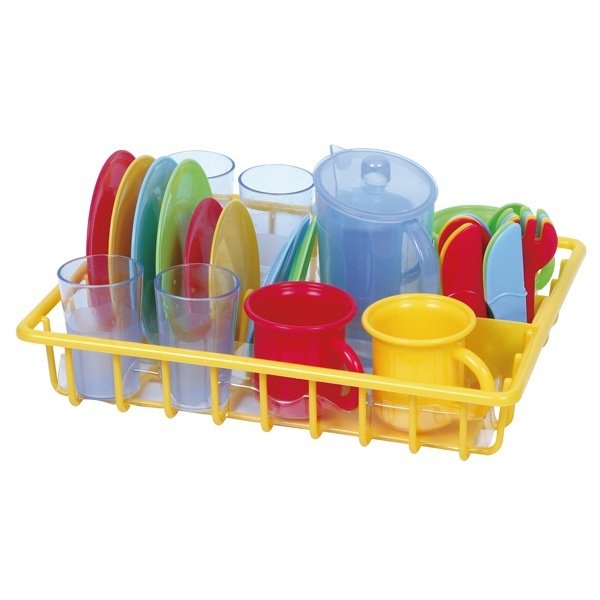 • Комплектация 2 чашки, 4 стакана, 4 тарелки, 2 блюдца, нож, вилка, ложка - по 2 шт, кувшин с крышкой, сушилка