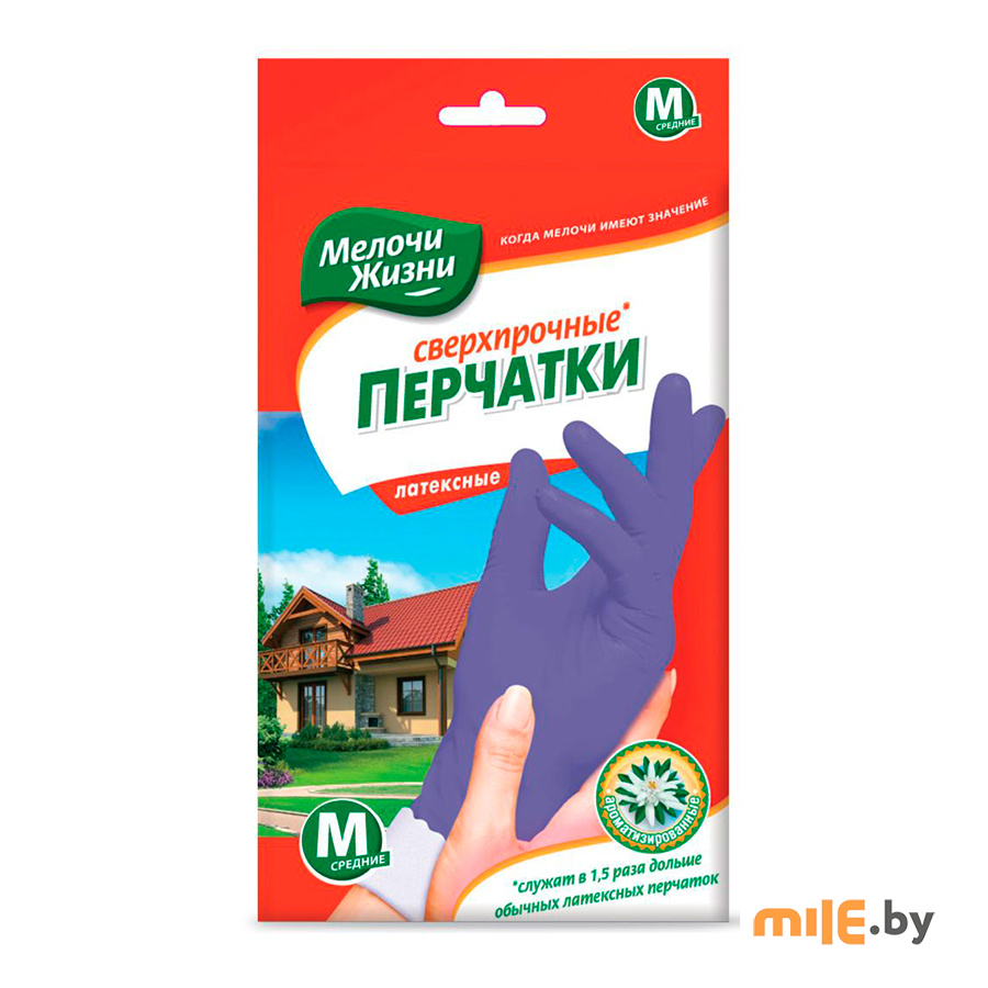 Перчатки Мелочи Жизни сверхпрочные M (2522 CDN) - ароматизированные латексные перчатки с хлопковым напылением (цветочный аромат). Отлично подходят для хозяйственных работ, требующих надежной защиты для рук (чувствительность к температуре, авторемонт, огородные работы). Более прочные в сравнении с хозяйственными перчатками. Внутри присутствует хлопковое напыление, что исключает появления аллергии и создает легкость при одевании. Допускается многоразовое использование. В упаковке 1 пара.
