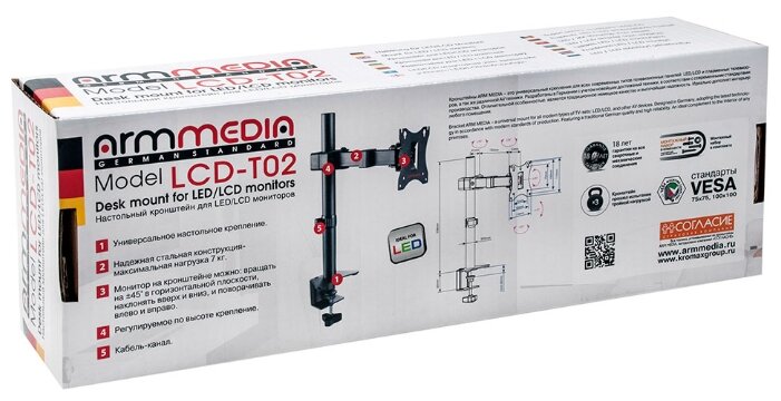 • Стандарт Vesa 100x100 мм, 75x75 мм