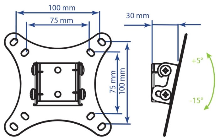 • Стандарт Vesa 100x100 мм, 75x75 мм, 50x50 мм
