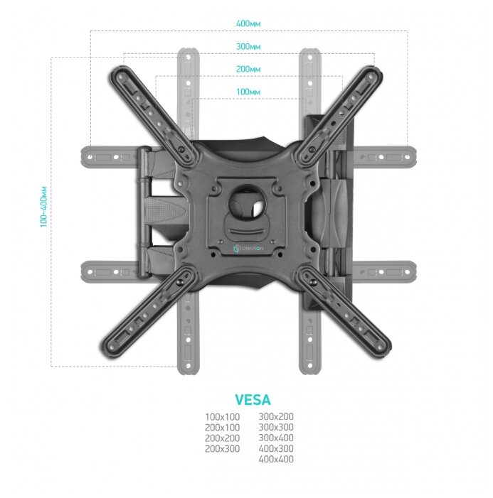 • Стандарт Vesa 100x100 мм, 200x100 мм, 200x300 мм, 300x200 мм, 200x200 мм, 300x400 мм, 100x200 мм, 300x300 мм, 200x400 мм, 400x200 мм, 400x300 мм, 400x400 мм, 300x100 мм