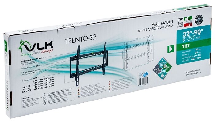 Стандарт Vesa100x100 мм, 200x100 мм, 200x300 мм, 300x200 мм, 200x200 мм, 300x300 мм, 200x400 мм, 400x200 мм, 400x300 мм, 400x400 мм, 600x400 мм, 75x75 мм, 50x50 мм