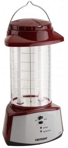 Светильник садовый аккумуляторный СВЕТОЗАР SV-57075 Предназначен в качестве стационарного или ручного переносного светильника Особенности: Количество ламп: 2 люминесцентные лампы Т8 по 6 Вт Автоматическое включение люминесцентных ламп светильника при исчезновении напряжения в электросети Благодаря особенностям конструкции свет излучается во все стороны, обеспечивая отличное освещение Может использоваться для освещения предметов на дальнем расстоянии В светильнике используются люминесцентные лампы с цоколем G13 Предусмотрена защита аккумулятора от перезарядки и полной разрядки Напряжение аккумулятора 6 В Время полной зарядки аккумулятора 20–24 ч Ручка для переноски