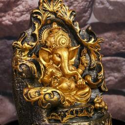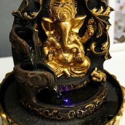 Фонтан настольный от сети, подсветка "Золотой Ганеша на ажурном троне" 28х20,5х20,5 см