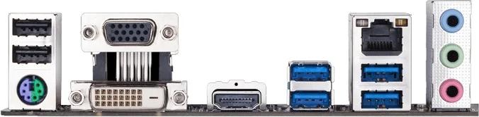 - Задняя панель 6 USB, D-Sub, DVI, HDMI, Ethernet, PS/2 (клавиатура), PS/2 (мышь)
