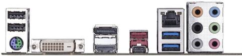 - Задняя панель 6 USB, 1 USB Type-C, DVI, DisplayPort, HDMI, Ethernet, PS/2 (клавиатура), PS/2 (мышь)