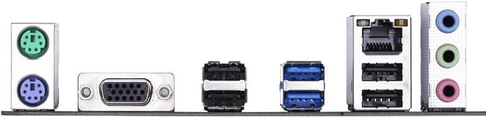 - Задняя панель 1 x VGA, PS/2 клавиатура, PS/2 мышь, RJ-45 LAN, Line-in, Line-out, Mic-in