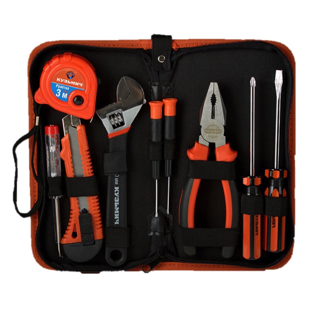 - Комплект поставки рулетка 3мх16мм 1 штука; однополюсный пробник (тестер) 100-250В 1 штука; нож сервисный повышенной прочности 18мм 1 штука; отвертка для точных работ с прямым шлицем 2.4х40мм 1 штука; отвертка для точных работ крестовая РН.00х40мм 1 штука; разводной ключ 8" - 200мм 1 штука; плоскогубцы комбинированные 180мм 1 штука; отвертка с прямым шлицем 6х100мм 1 штука; отвертка крестовая РН.2х100мм 1 штука