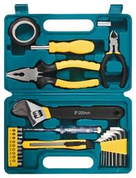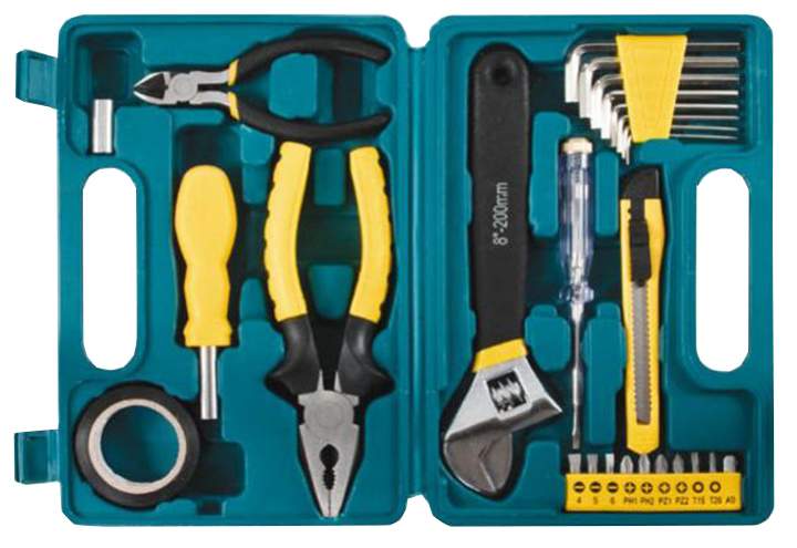- Комплект поставки пассатижи 165 мм; ключ разводной 200мм; отвертка индикаторная; бокорезы "мини" 115 мм; переходник с воротка 1/4" на биту; переходник с биты на головку 1/4"; отвертка с магнитным фиксатором бит; 8 ключей hex 1.5, 2.0, 2.5, 3.0, 4.0, 5.0, 5.5, 6.0 мм; 9 бит - 25 мм sl4, sl5, sl6, ph1, ph2, pz1, pz2, t15, t20; лента изоляционная; нож технический 9 мм