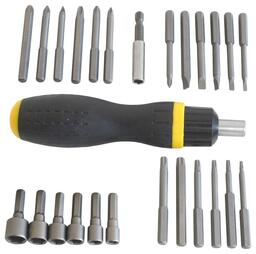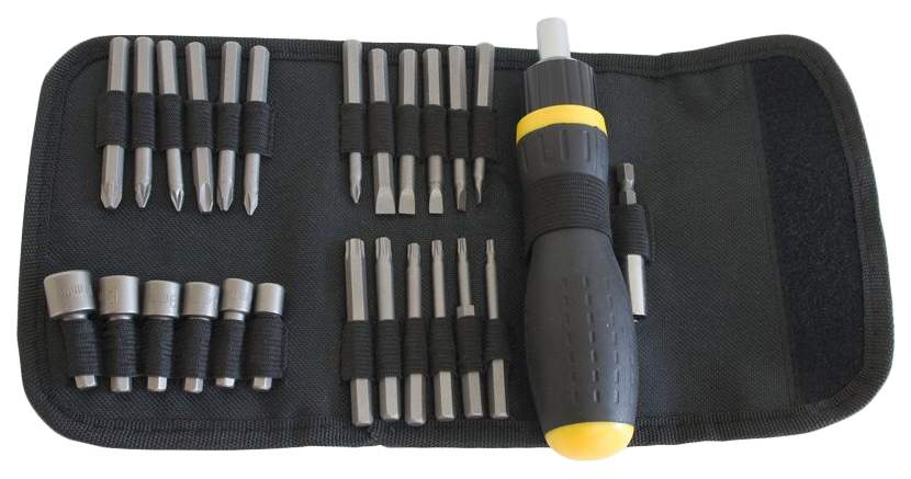 Комплект поставкиБиты 65мм: PH: 0, 1, 2, 3, PZ: 1, 2, 3, TORX: T10, T15, T20, T25, T30, T40, SL: 3 мм, 4 мм, 5 мм, 6 мм, 7 мм - 18 шт; Головки с шестигранным хвостовиком 38 мм: 6 мм, 7 мм, 8 мм, 9 мм, 10 мм, 11 мм; Магнитный адаптер для бит 60 мм - 1 шт; Отвертка-битодержатель с реверсом - 1 шт; Сумка для хранения - 1 шт