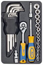 - Состав Ключ трещоточный - 1 шт, Отвертка под квадрат - 1 шт, Торцевые 6-игранные головки (3,5, 4, 4.5, 5, 5.5, 6, 6,5, 7, 8, 9, 10, 11, 12, 13, 14) - 15 шт, Удлинитель 100 мм - 1 шт, Шарнир карданный - 1 шт, Шестигранные ключи Hex (1,5, 2, 2.5, 3, 4, 5, 6, 8, 10) - 9 шт
