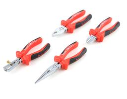 - Комплект поставки пассатижи 185 мм; боковые кусачки 165 мм; клещи с удлиненными губками 200 мм; клещи для удаления изоляции 160 мм