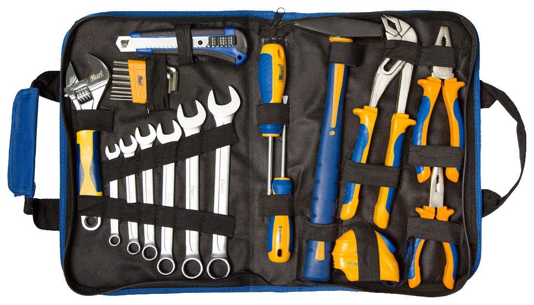 - Состав Длинногубцы 160 мм - 1 шт, Клещи переставные 250 мм - 1 шт, Ключи комбинированные 8 мм, 10 мм, 12 мм, 14 мм, 17 мм, 19 мм - 6 шт, Ключи шестигранные 1,5мм, 2мм, 2,5мм, 3мм, 4мм, 5мм, 5,5мм, 6мм - 8 шт, Молоток с фибергласcовой рукояткой - 1 шт, Отвертка крестовая PH2×100 - 1 шт, Отвертка шлицевая SL5×100 - 1 шт, Пассатижи комбинированные 180 мм - 1 шт, Разводной ключ 200 мм - 1 шт, Рулетка 3м - 1 шт, Универсальный нож 18 мм - 1 шт