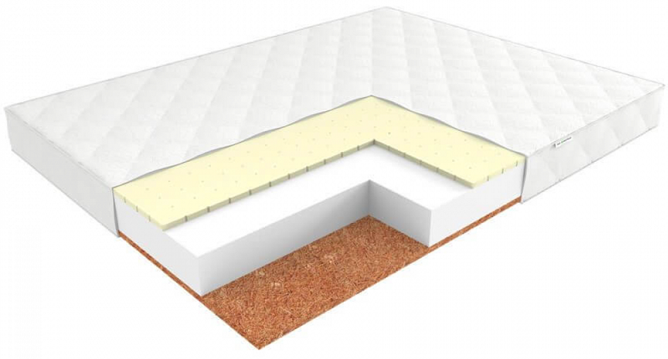 Основные характеристики: Базовый блок: беспружинный Макс. нагрузка на спальное место: 80 кг Жесткость верхней стороны: средний Жесткость нижней стороны: средний Базовый блок: Материал беспружинного блока: пена Настилочные материалы: Латекс: есть Кокосовая койра: есть Хлопковое полотно (х/б ватин): есть Чехол: Съёмный чехол: есть Тип ткани чехла: джерси Размеры и вес: Длина: 198 см Высота: 13 см Ширина: 120 см.