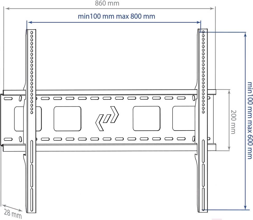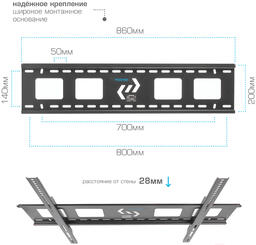• Поддерживаемый стандарт VESA 100×100, 200×200, 300×300, 400×400, 200×300, 200×400, 300×400, 800×600, 200×100, 800×500, 600×600, 800×400, 400×200, 600×400, 300×200, 400×300, 600×300, 600×200, 700×400, 100×200, 700×600