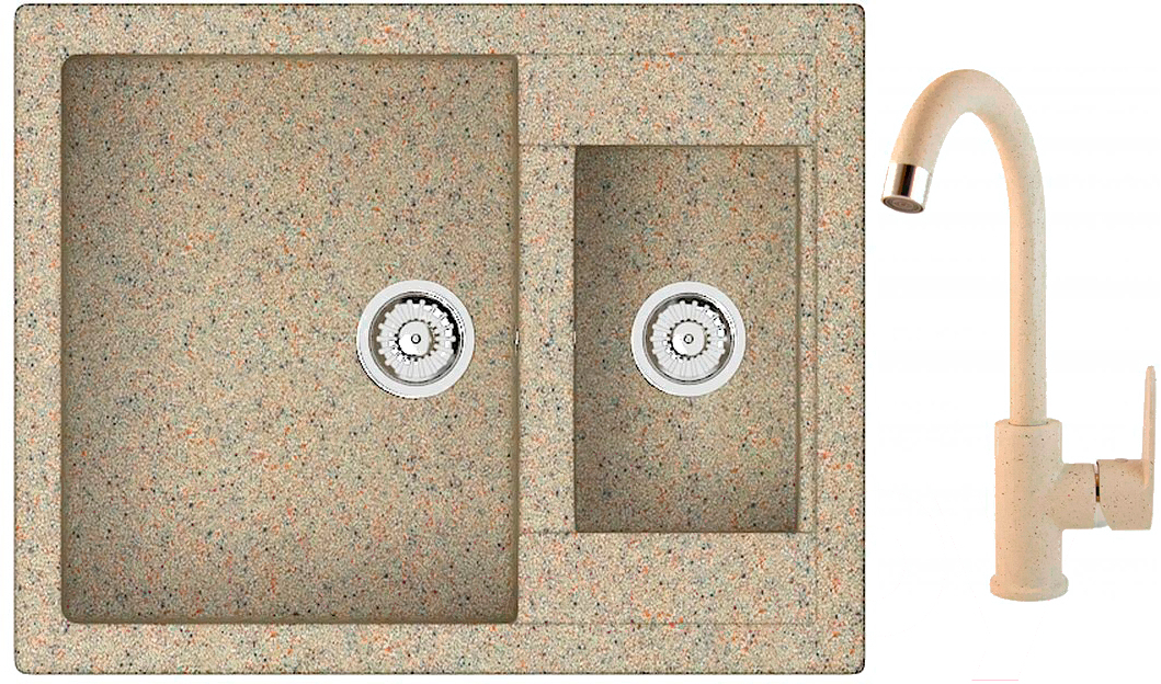 Мойка кухонная Berge BR-6150 + смеситель GR-3505 (песочный/классик)