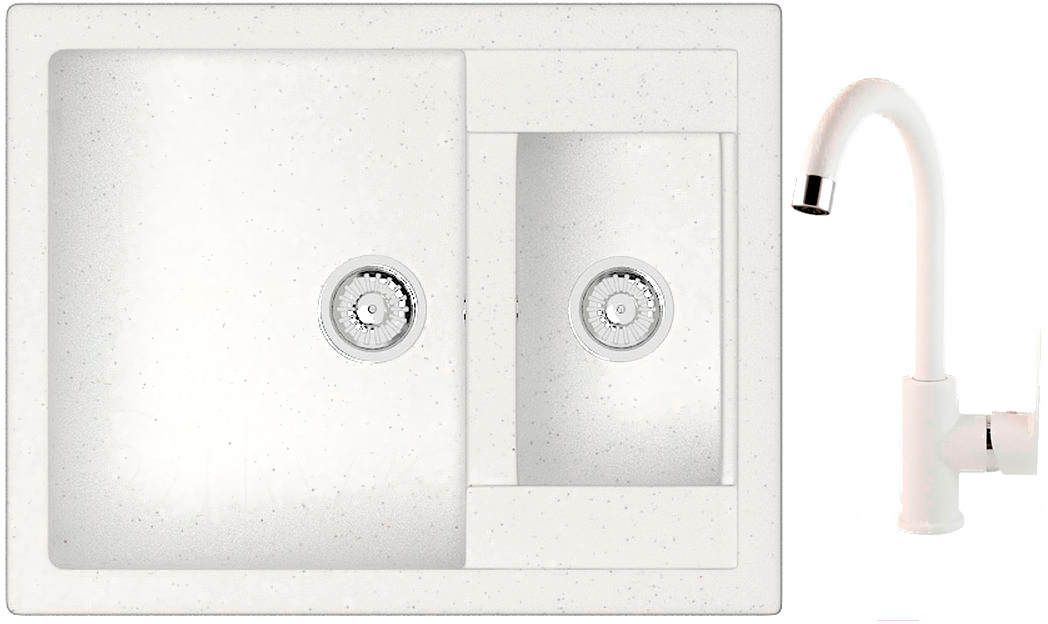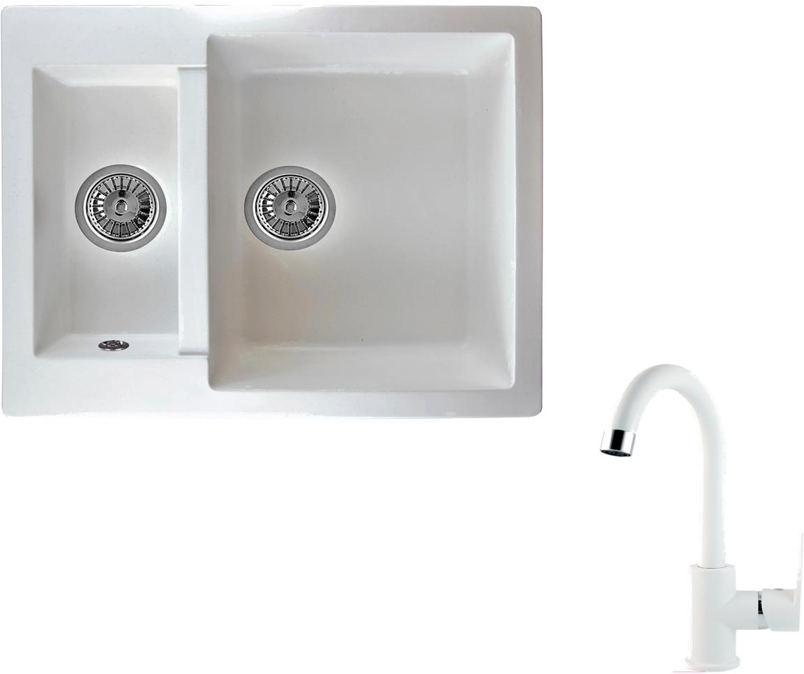 Мойка кухонная Berge BR-6150 + смеситель GR-3505 (белый/арктик)