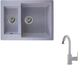 Мойка кухонная Berge BR-6150 + смеситель GR-3505 (серый/базальт)