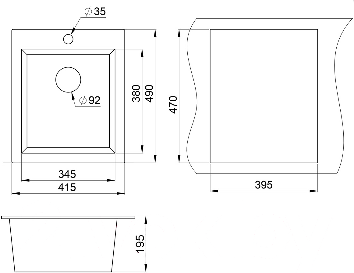 • Комплект поставки герметик, сифон, сливная арматура, смеситель (Spring 35-09L), инструкция, корзинчатый вентиль 3.5"