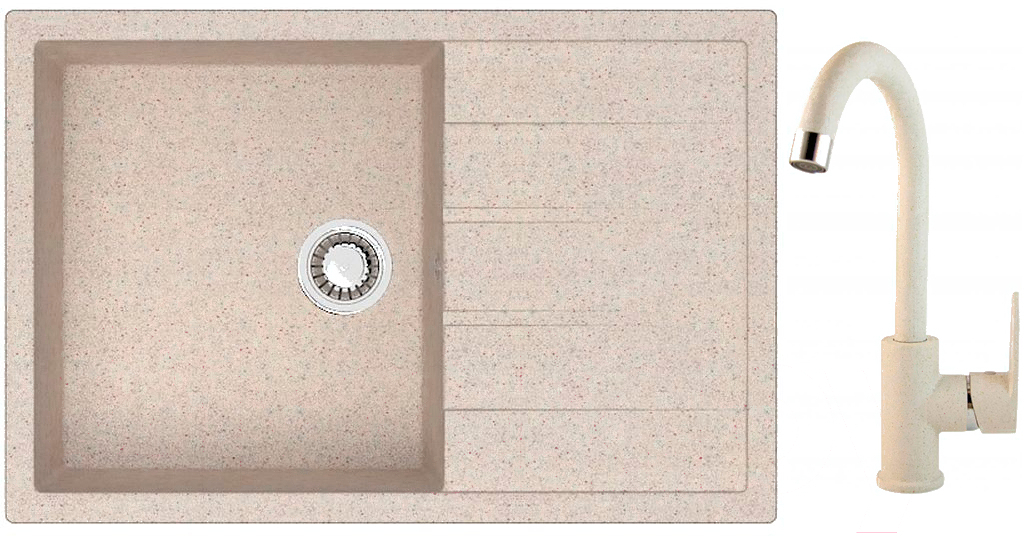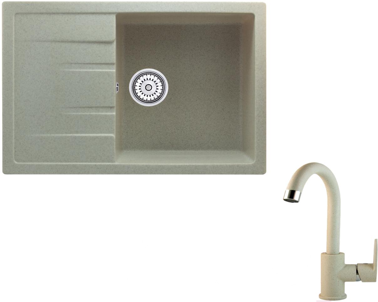 Мойка кухонная Berge BR-7603 + смеситель GR-3505 (бежевый/пирит)