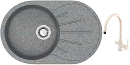 Мойка кухонная Berge BR-7501 + смеситель Spring 3509L (графит/пирит)