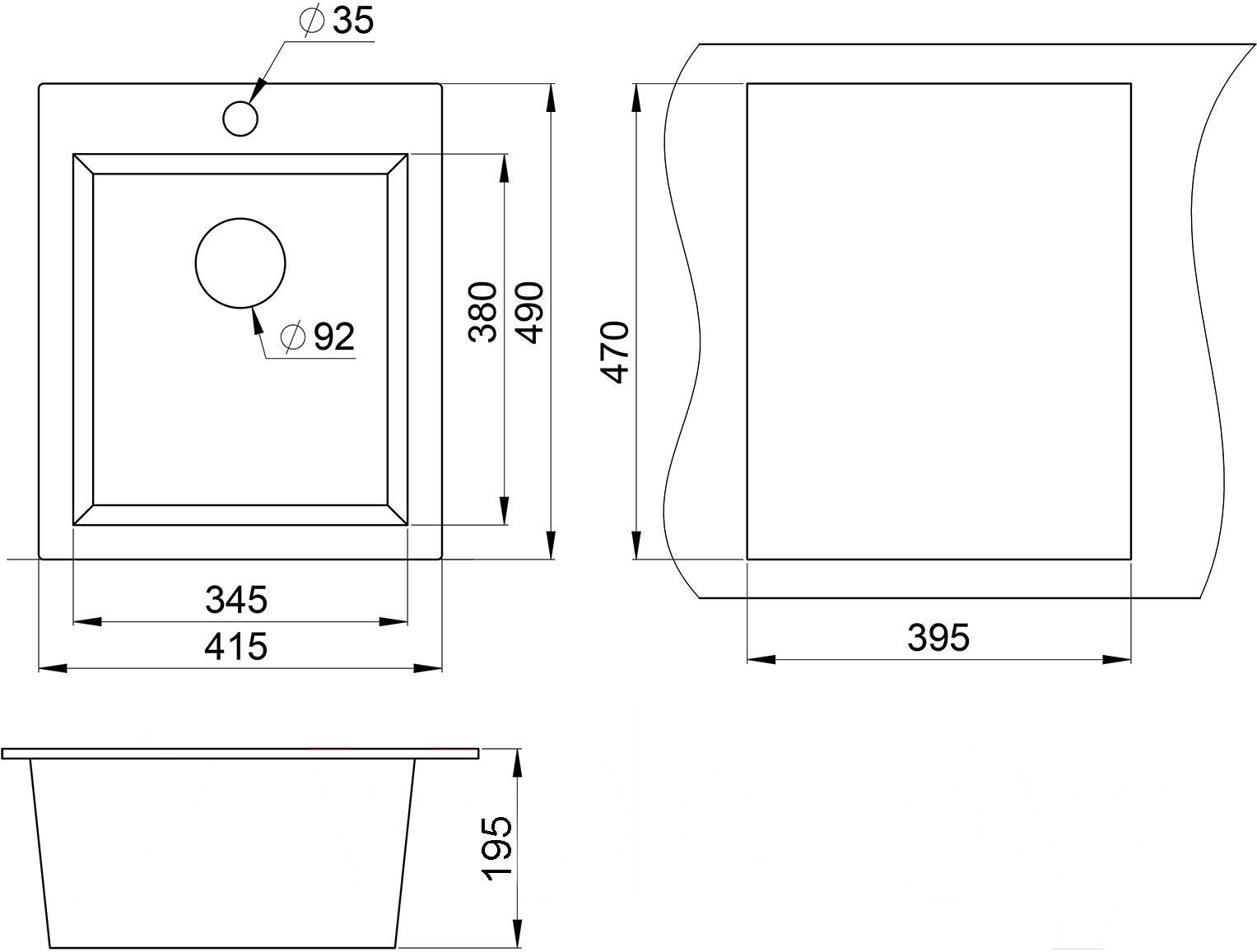 • Форма мойки прямоугольная