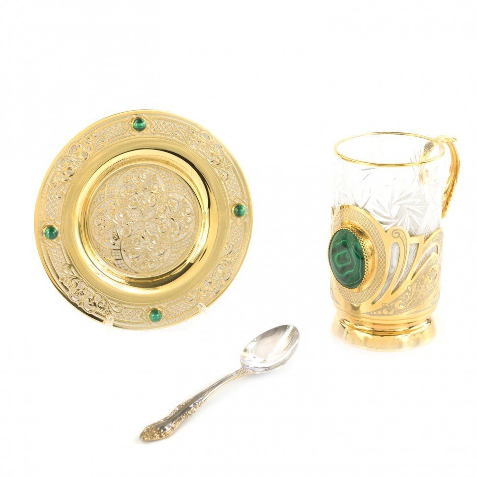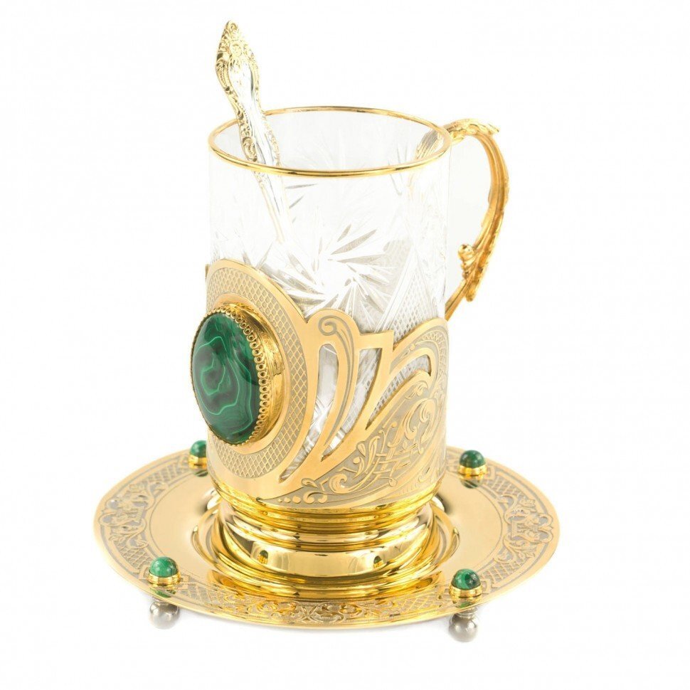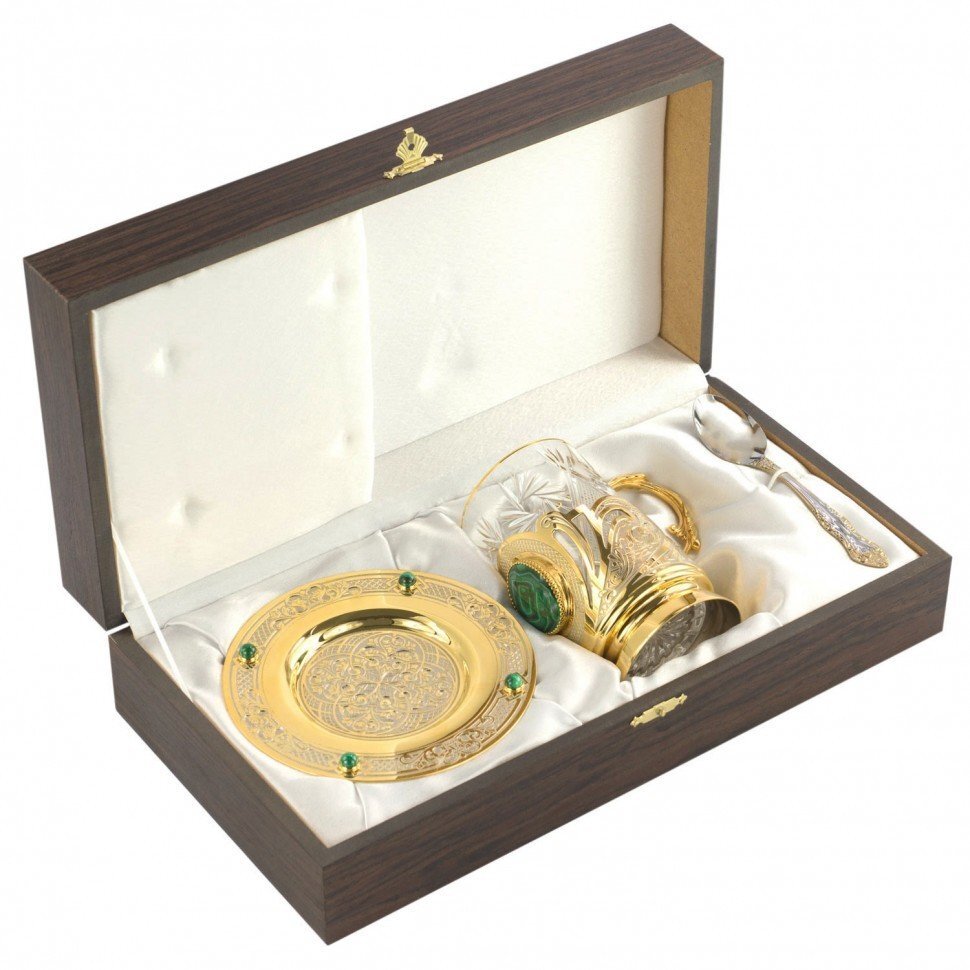 - Размер подстаканник 7х12х12,5 см, блюдце 14х10 см, ложка 14,5х3,5 см, футляр 35х18х9 см