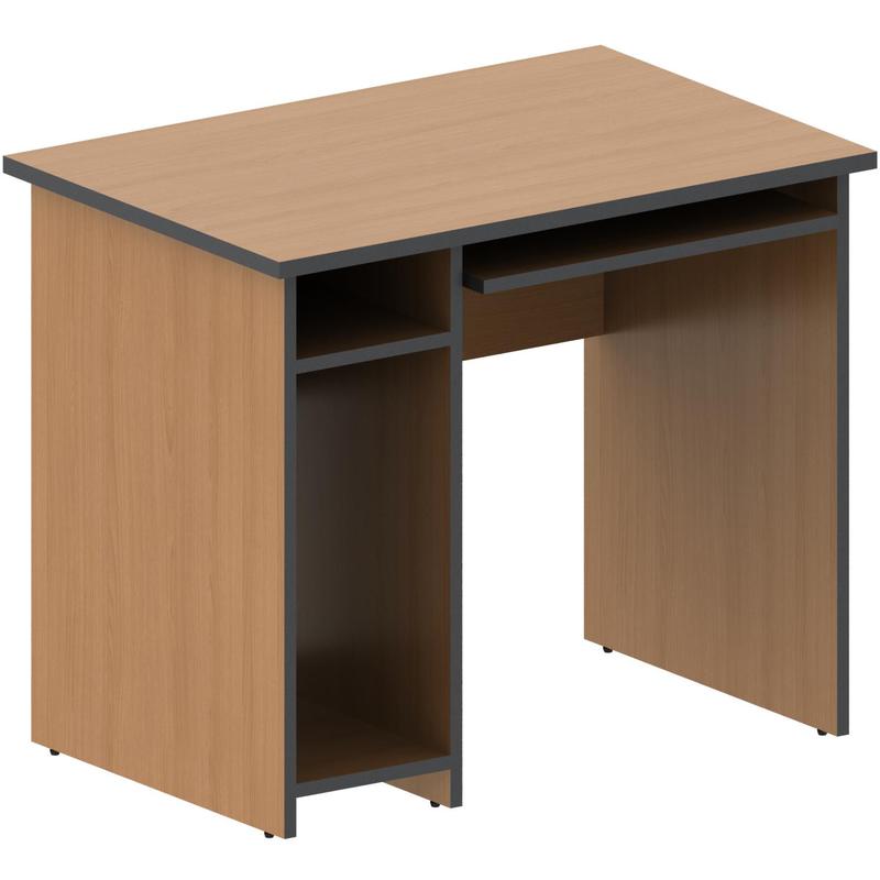 Компьютерный стол «Агат» изготовлен из ламинированной деревоплиты (ЛДСП) цвета ольха. Под столешницей предусмотрена выдвижная полка под клавиатуру. В левой части находится открытая ниша под системный блок. Изображения товаров на сайте не могут гарантировать точную цветопередачу.