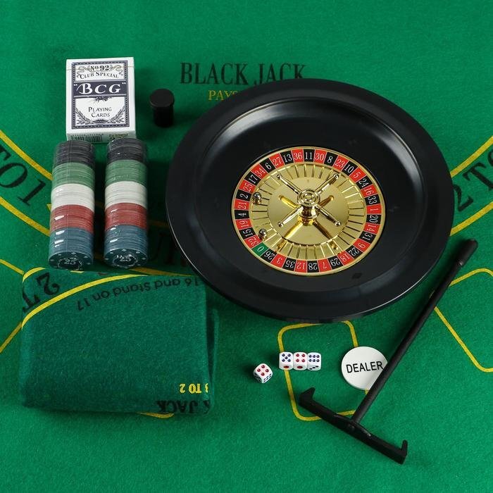 Игровой набор: рулетка (карты 54 шт, фишки 100 шт, б/номин, кубики 4 шт, поле 33х29 см)