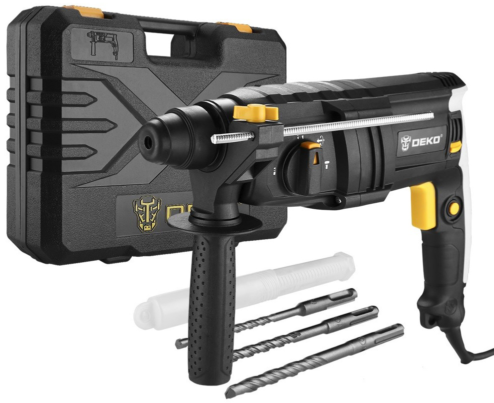 Питание: от сети, Мощность 850 Вт, тип крепления сверла SDS-Plus, расположение двигателя горизонтальное, макс. число оборотов холостого хода 870 об/мин, регулятор числа оборотов, реверс, кейс, вес 4.1 кг.