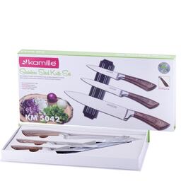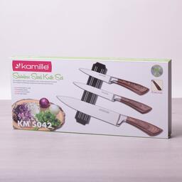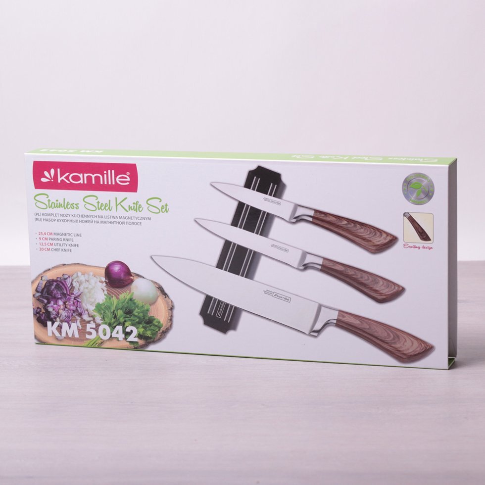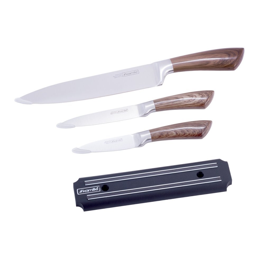 Набор кухонных ножей на магнитной полоске 4 предмета (3 ножа+держатель) Kamille КМ5042