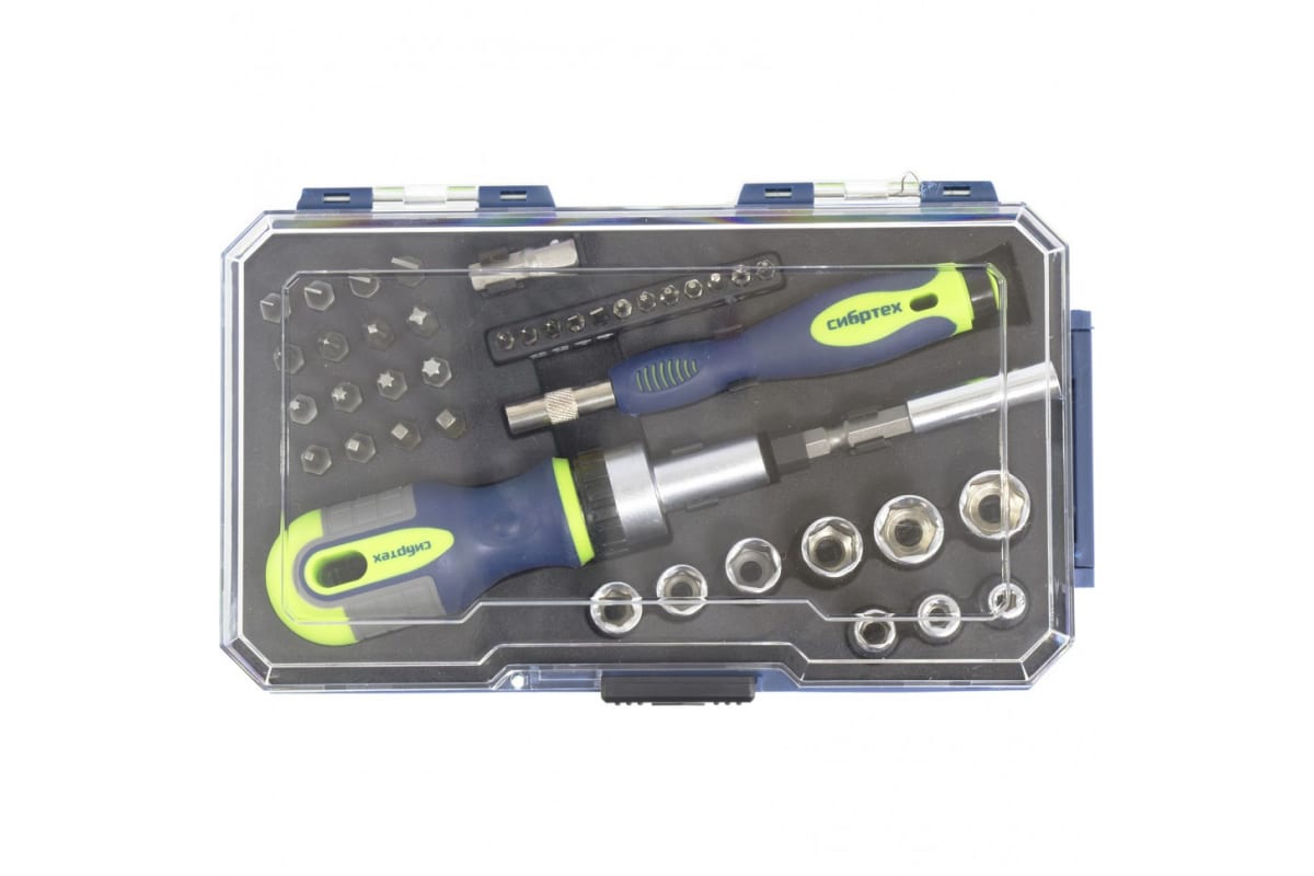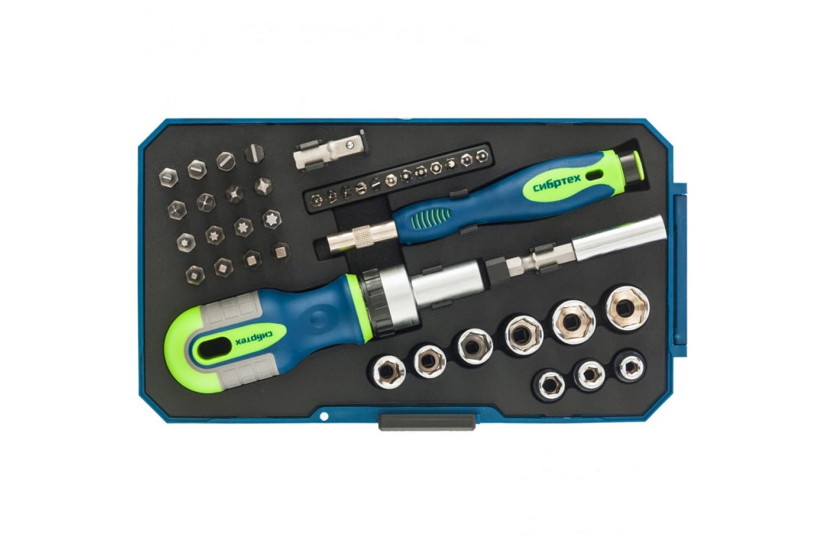 Отвертки реверсивные с набором бит и торцевыми головками, 41 шт. СИБРТЕХ 13338