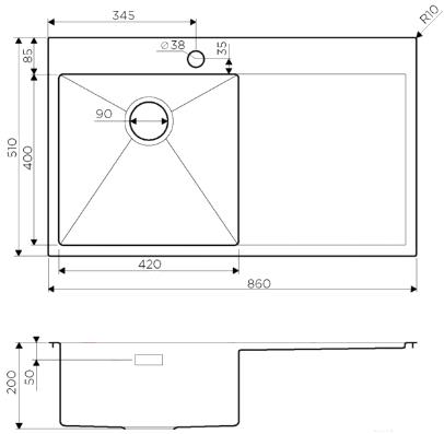 - Комплект поставки крепления, накладка на сливное отверстие, сифон, выпуск (донный клапан), мойка