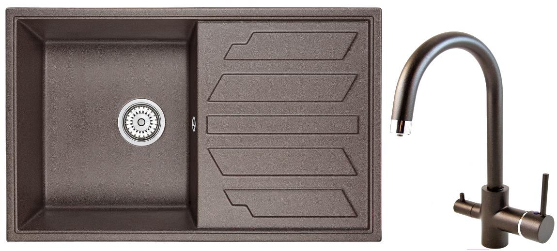 - Комплект поставки сифон, смеситель (GR 35-09), корзинчатый вентиль 3.5", мойка