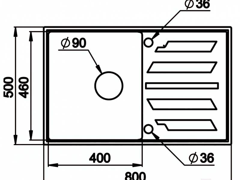 - Форма мойки прямоугольная