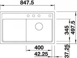 • Совместимые приспособления коландер (Blanco 223077), сифон (Blanco 137262), накладка на сливное отверстие (Blanco CapFlow 517666), смеситель (Blanco Felisa-S, Alta-S, Linus-S), мусорная система (Blanco Select 45/2 518721)