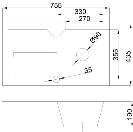 - Отверстие для смесителя нет