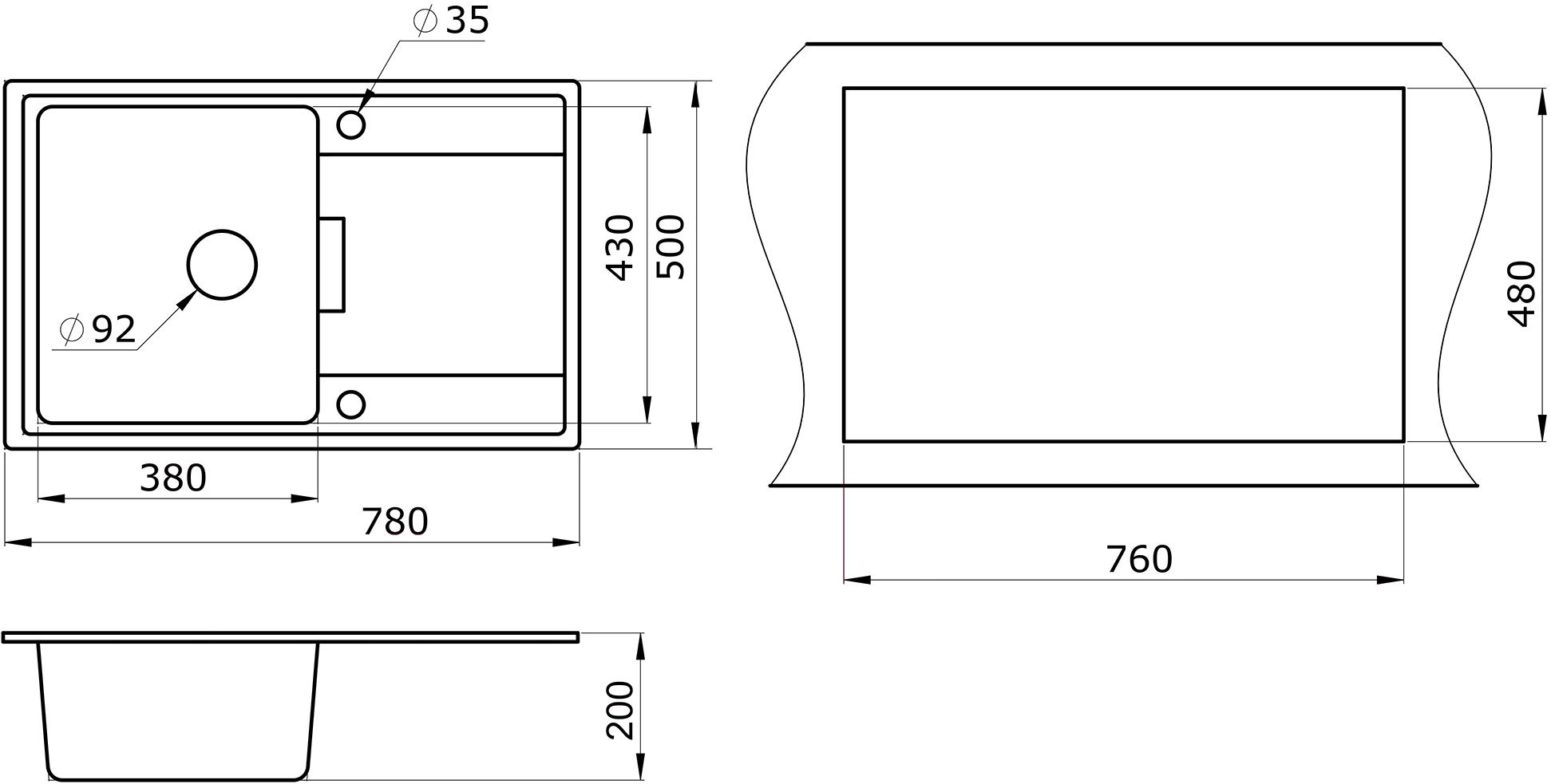 • Форма мойки прямоугольная