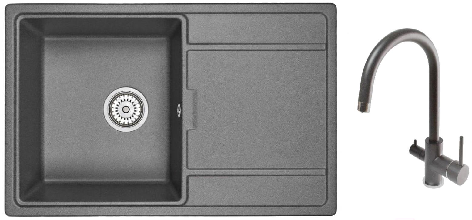 Мойка кухонная Granula GR-7804 + смеситель GR-3509L (графит)