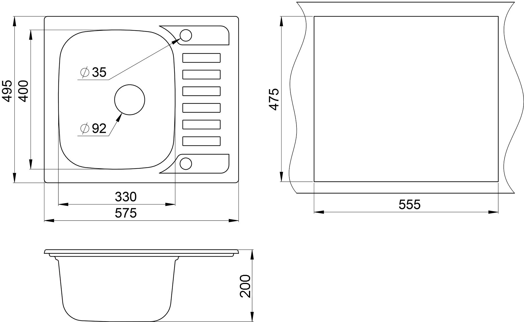 - Диаметр сливного отверстия 3.5"