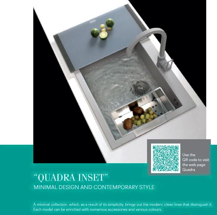 - Совместимые приспособления разделочная доска (Elleci Quadra Integra Zen), коландер (Elleci L AVI03305), подставка (Elleci AGB01303, AGB01304 )