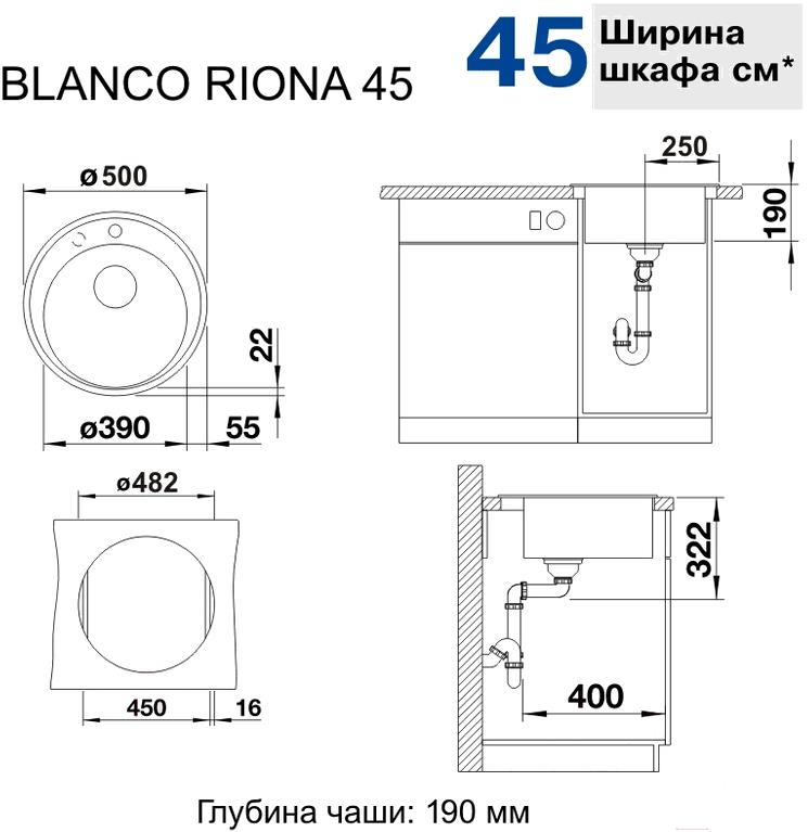 Мойка кухонная Blanco Riona 45 (521401) + смеситель Mida (519423) / 521401M2 (кофе)