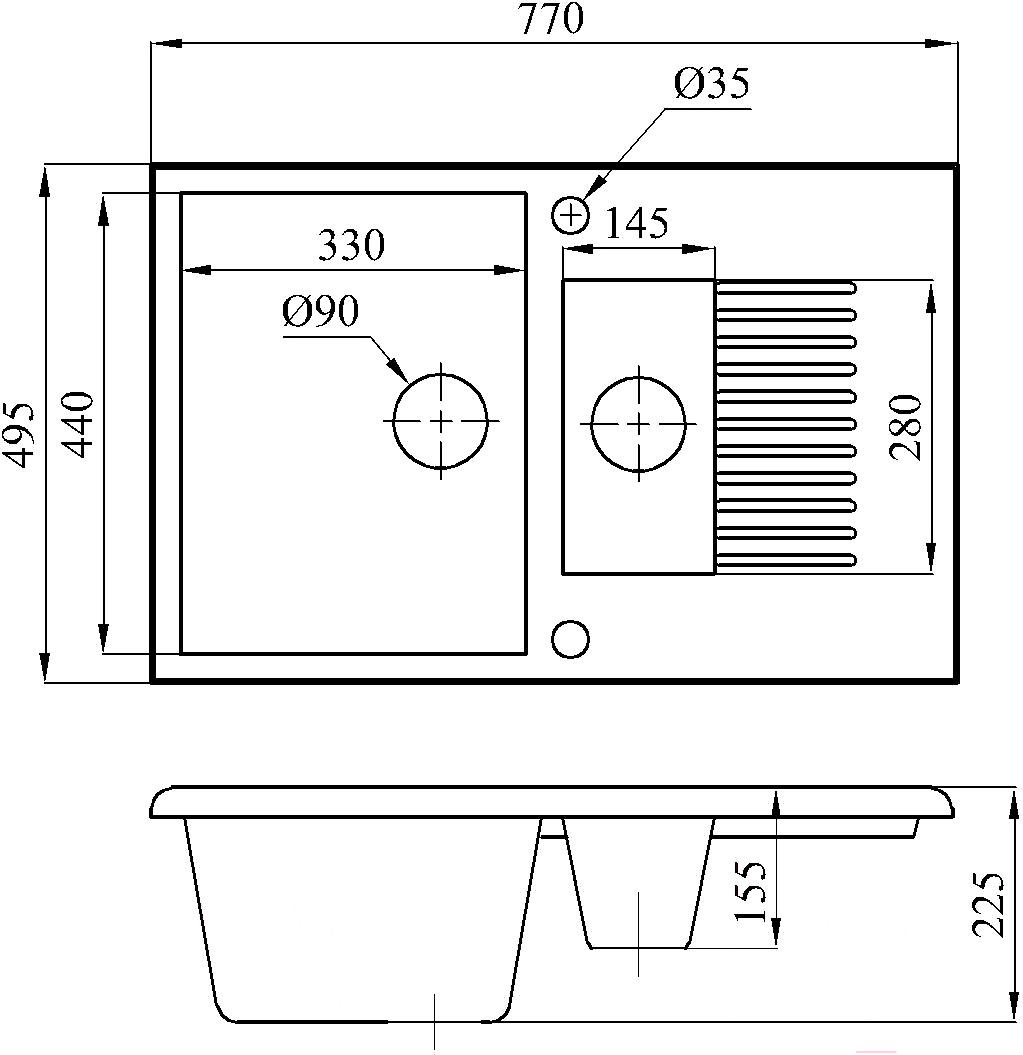 - Размеры дополнительной чаши 14.5x28x15.5 см