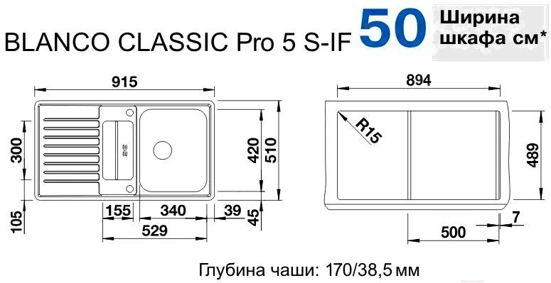 Мойка кухонная Blanco Classic Pro 5 S-IF / 523663