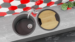 • Комплект поставки шаблон для врезки, разделочная доска (KitKraken Lake), мойка