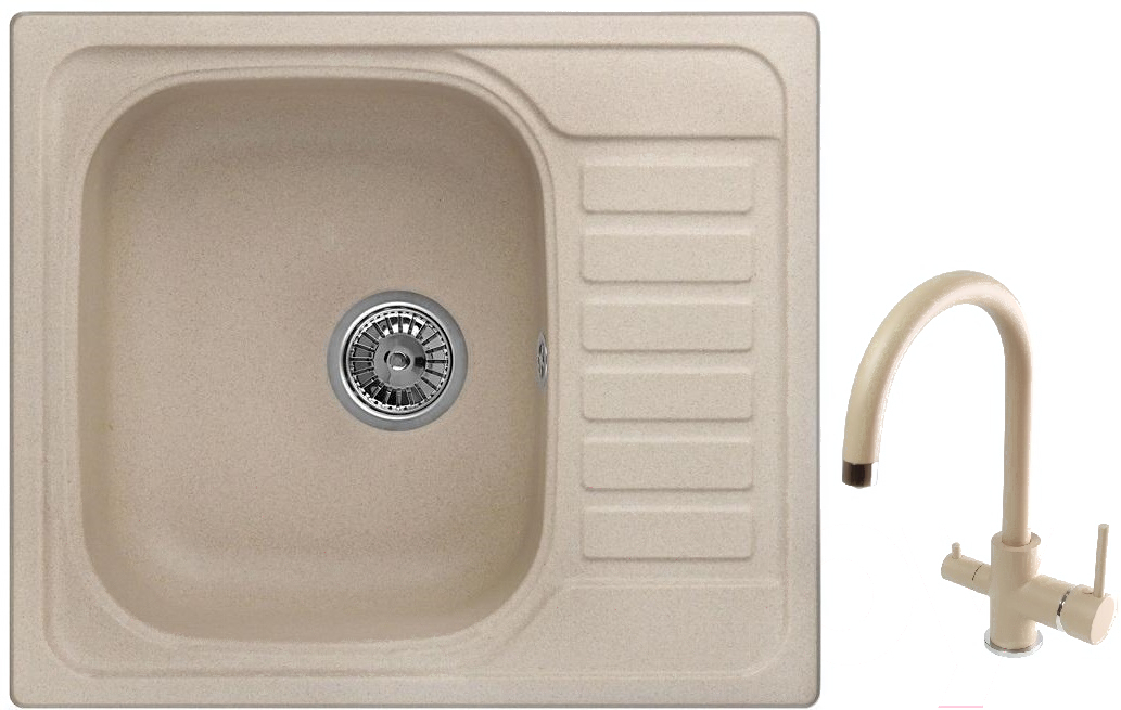 Мойка кухонная Granula GR-5801 + смеситель Spring 35-09L (песочный)