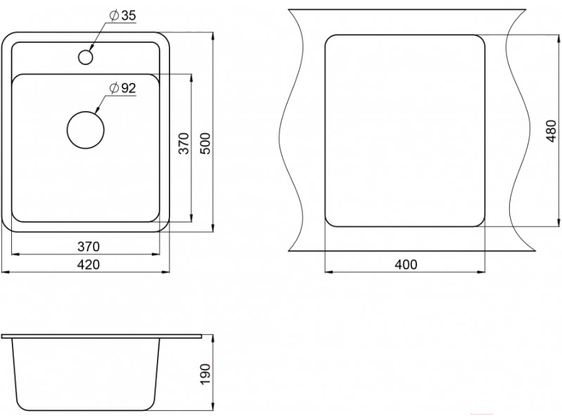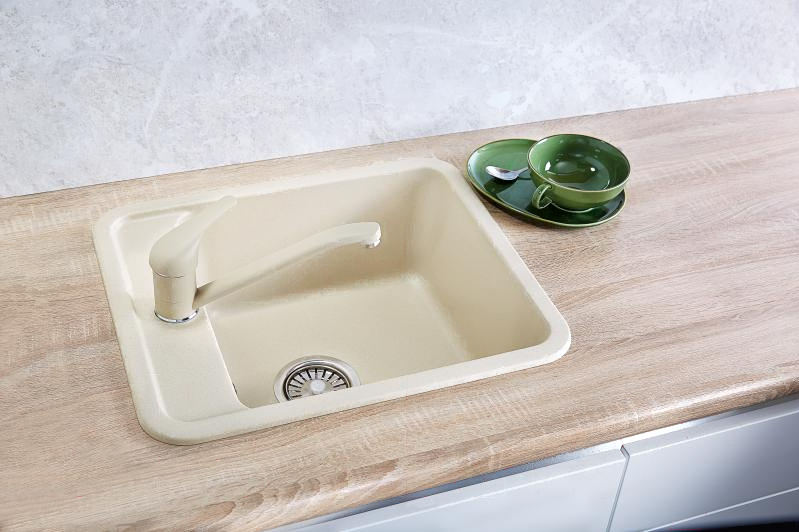 • Комплект поставки сифон, смеситель (GR 40-03), корзинчатый вентиль 3.5", мойка