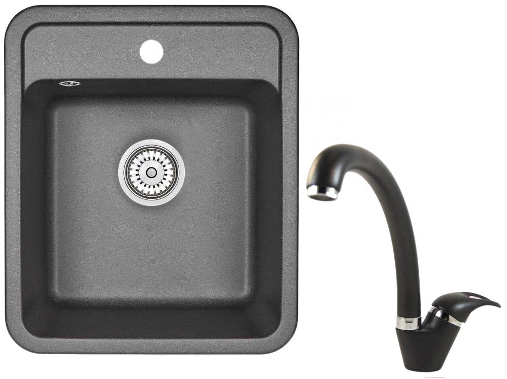 Мойка кухонная Granula GR-4202 + смеситель 40-03 (черный)